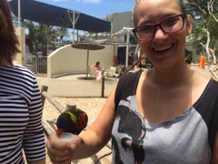 Sydney with a Lorikeet on our summer vacation.